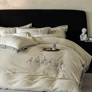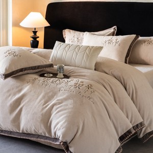 复古轻奢风骆玛绒床上四件套冬季加厚保暖牛奶绒刺绣被套床单床品