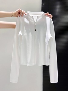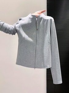 双拉链立领长袖t恤女开衫外套2025秋季新款修身显瘦短款打底上衣