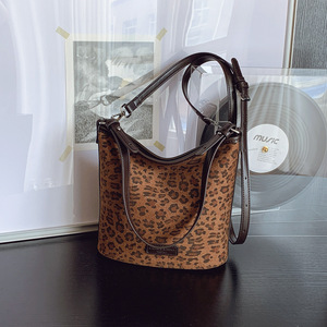 跨境豹纹水桶包包女2025秋冬新款腋下单肩包时尚通勤斜挎包腋下包