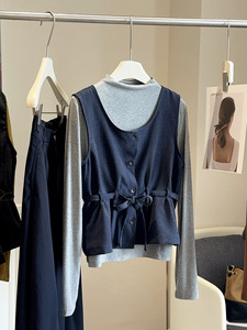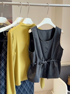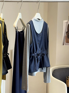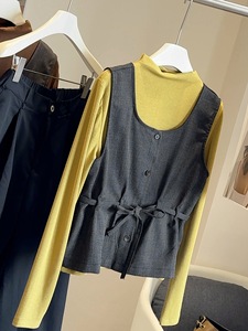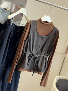 复古气质系带收腰西装马甲+半高领内搭T恤女秋季2025新款减龄套装