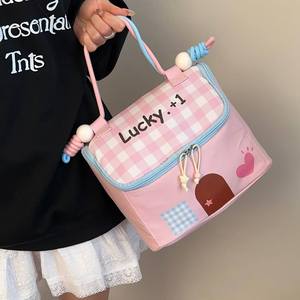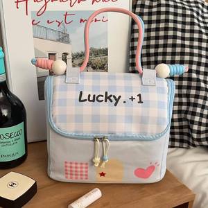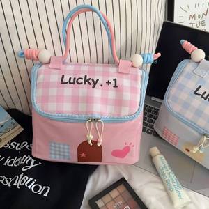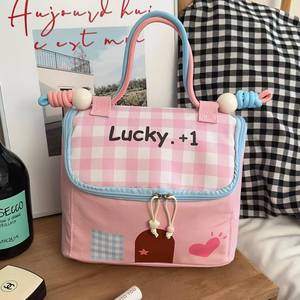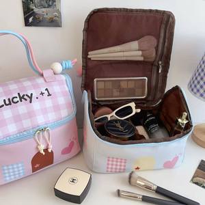 少女心lucky房子化妆包女高颜值大容量洗漱包手提撞色化妆收纳包