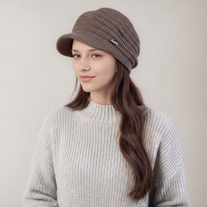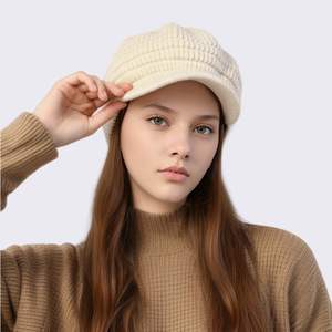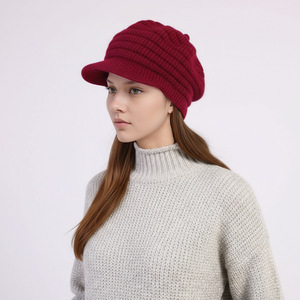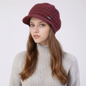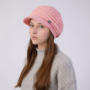 跨境新款女士针织帽子冬天加绒保暖防寒毛线帽时尚加厚百搭鸭舌帽