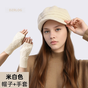 【帽子+手套】米白