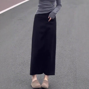 极简黑色西装半身裙女秋季新款半裙显瘦气质百搭洋气开叉直筒长裙