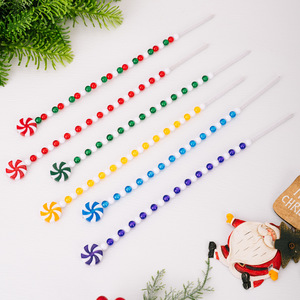 亚马逊圣诞卷曲铃铛糖果条红白串珠拐杖棒棒糖圣诞树插件花枝装饰