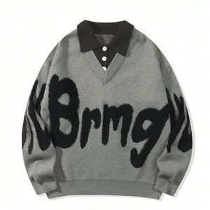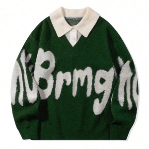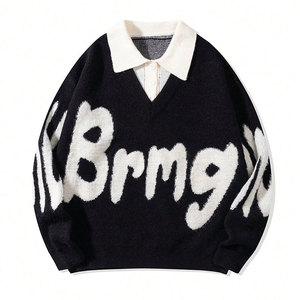 安德烈|原创潮牌翻领假两件男士毛衣美式字母提花针织衫宽松休闲