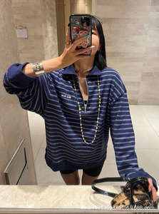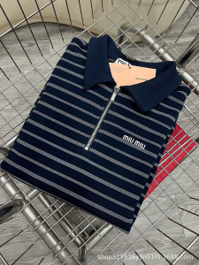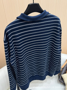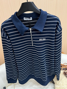 南油直供25早秋款时尚撞色半拉链条纹Polo衫经典印花字母修身上衣