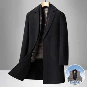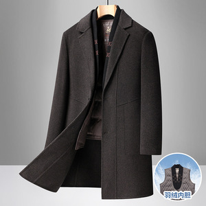 男式大衣2025秋冬中长款西装领脱卸羽绒内胆青年商务风衣保暖外套