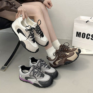 2025夏季新款时尚休闲鞋女厚底增高运动鞋ins百搭透气网面阿甘鞋