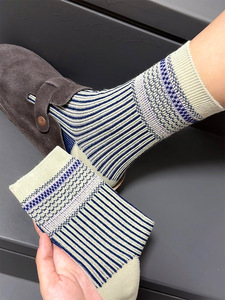 双针双路复古秋冬男女中筒袜子森系咔叽百搭保暖棉韩国日系个性