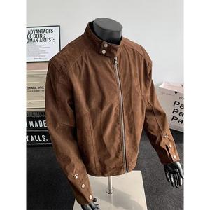 情侣装麂皮绒皮立领夹克外套男秋季潮牌痞帅街头感休闲飞行服上衣