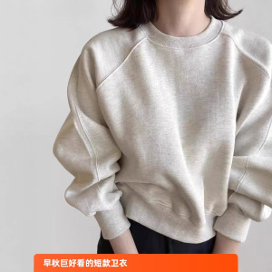 秋季超火卫衣女2025新款巨好看的爆款早秋薄款短款小个子灰色上衣