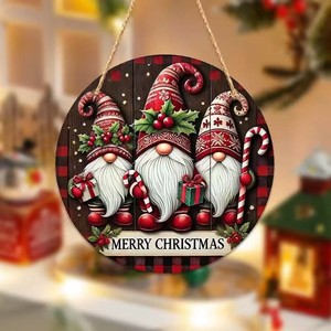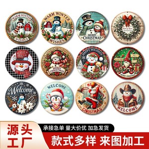 跨境新款木制圣诞彩色雪人圣诞老人悬挂装饰户外节日派对装饰挂件