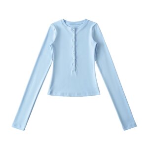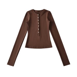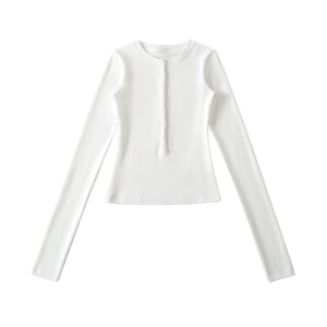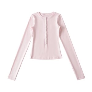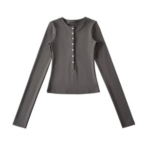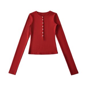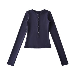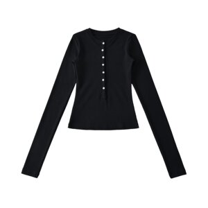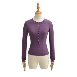 RY25217-25秋季新款 美式弹力修身显瘦亨利领纽扣长袖打底上衣T恤