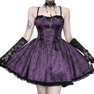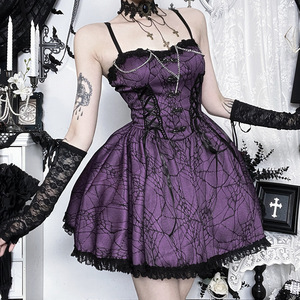 YL25359秋季新款蕾丝吊带撞色连衣裙 亚文化百搭紫色韵味短裙