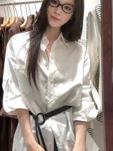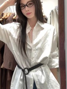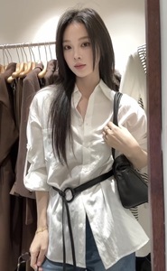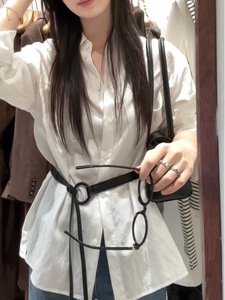 白色气质高级感长袖衬衫女秋季2025新款宽松小众别致法式腰带上衣