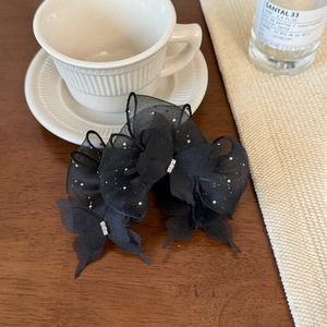 高颜值蝴蝶结泡泡纱抓夹网纱甜美气质发夹后脑勺半扎发盘发鲨鱼夹