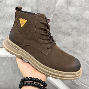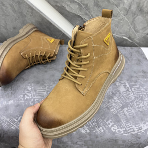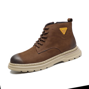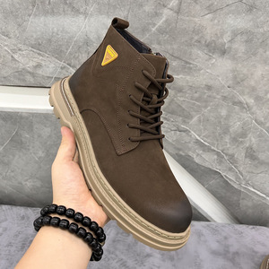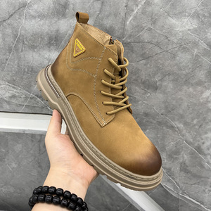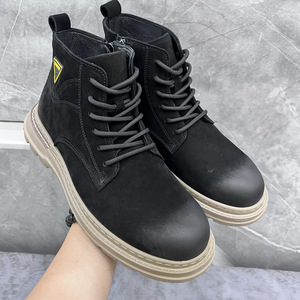马丁靴头层牛皮磨砂发泡底冬季黄靴英伦风复古轻底厚底高帮工装靴