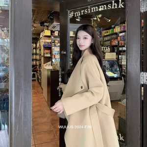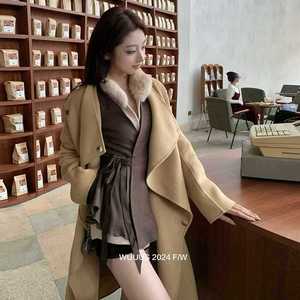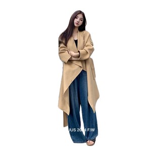 2025冬季新款100绵羊毛时尚不规则下摆双面呢大衣女风衣外套女装
