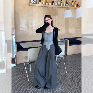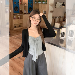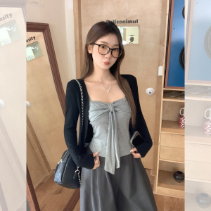 2025实拍韩系辣妹蝴蝶结系带抹胸背心吊带搭配开衫女装两件套上衣