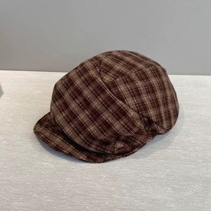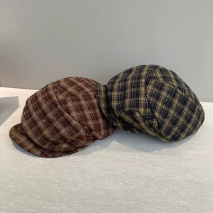 日系磨毛格纹贝雷帽子大头围松紧显脸小复古百搭文艺八角帽画家帽