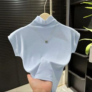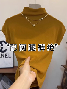 2025早秋新款小立领短袖t恤女时尚内搭飞飞袖打底衫短款洋气上衣