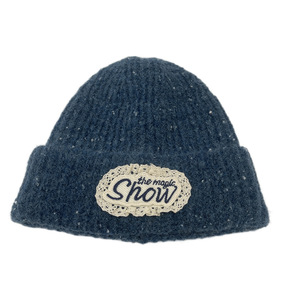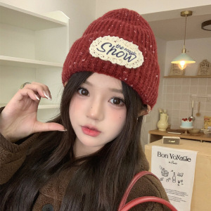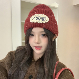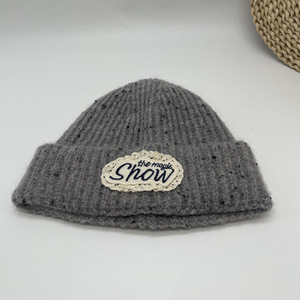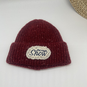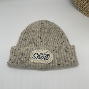 蕾丝英文字母标针织男女瓜皮帽纯色雪花点坑条卷边护耳保暖包头帽