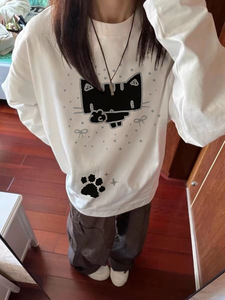白色长袖t恤女秋2025新款宽松慵懒风外穿内搭打底衫上衣服