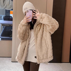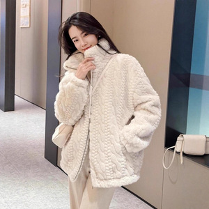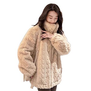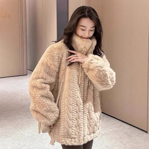 獭兔毛皮草外套女年轻款2024冬季韩版宽松立领加厚水貂毛麻花大衣