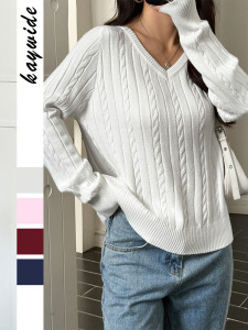 跨境欧美Y2K风高级V领毛织长袖上衣毛衣女装2025秋冬亚马逊独立站