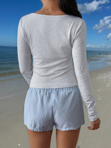跨境欧美Y2K辣妹风百搭长袖上衣T恤女装2025秋冬亚马逊外贸独立站