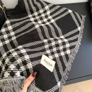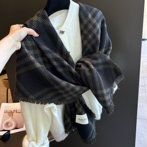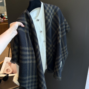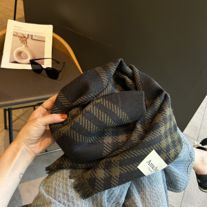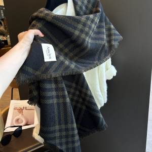 含羊毛大牌明星同款英伦绿色格子围巾女冬季披肩百搭保暖围脖情侣