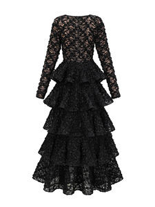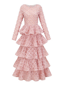 跨境热销外贸女装独立站涤纶甜美玫瑰蛋糕裙子舞会礼服重工连衣裙