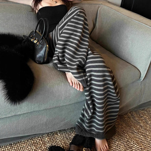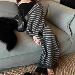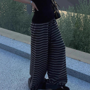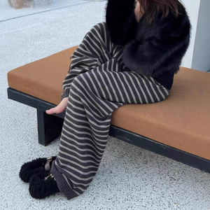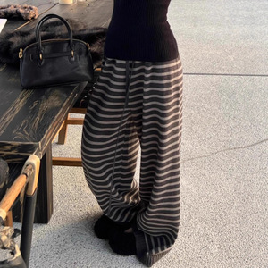 松弛感裤子宽松bf慵懒风休闲黑白条纹针织直筒阔腿裤女秋冬季