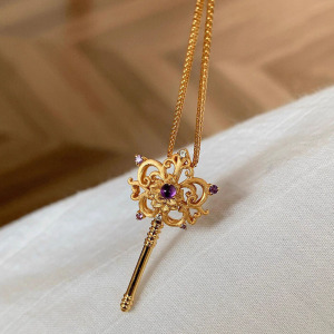 小红书爆款中古拉丝魔法棒吊坠挂件高级小众独特项链饰品一件代发