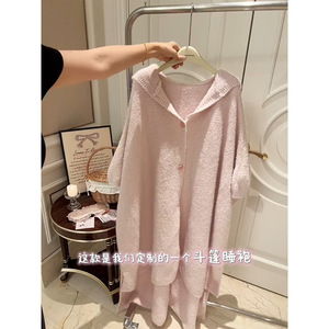 甜美少女半边绒兔子耳朵睡袍女2025秋冬季大码宽松加厚家居服睡衣