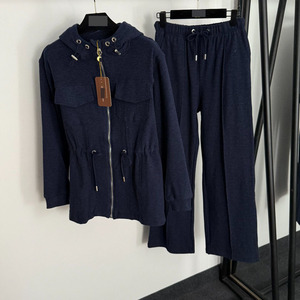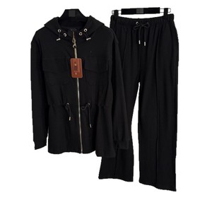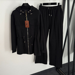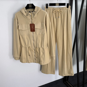 2025款套装双口袋腰部抽绳收腰长袖连帽拉链外套+松紧腰休闲长裤