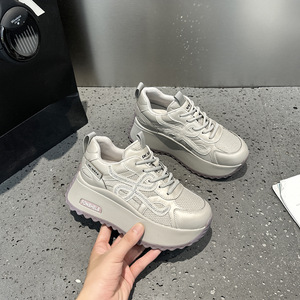 ins老爹鞋女2025新款真皮小个子厚底增高松糕鞋百搭运动休闲鞋