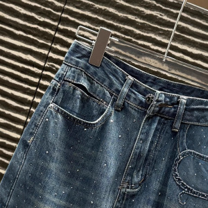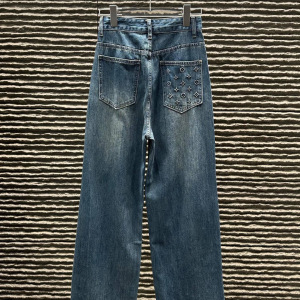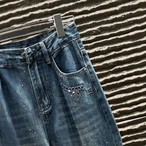 L25秋冬新款复古时尚重工中东烫钻工艺洗水牛仔长裤