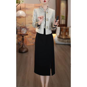2025春秋新款妈妈气质爆款套装裙子高档新中式长袖两件套连衣裙女