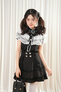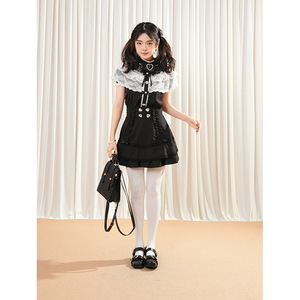 【十六夜】2025年日系亚文化蕾丝蝴蝶结上衣+黑色短裙两件套装女