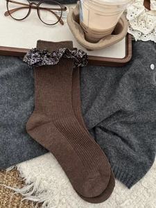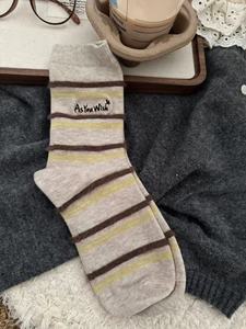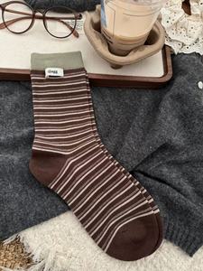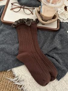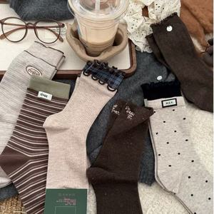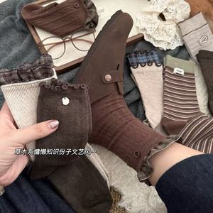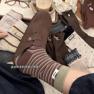 秋冬美拉德米咖色系堆堆袜韩系棕色配勃肯鞋中筒袜女棉袜日系慵懒
