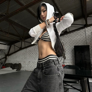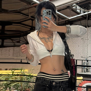 ins欧美风2025秋新款时尚街头双拉链长袖开衫卫衣外套上衣T恤女潮