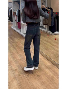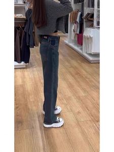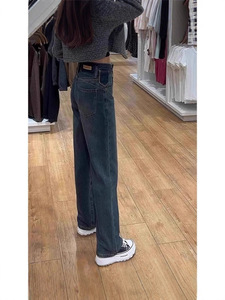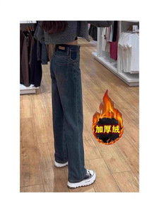 加绒加厚窄版爆款水泥灰直筒牛仔裤女冬季新款高腰显瘦百搭阔腿裤