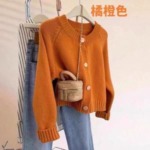 爆款100羊毛衫秋冬糖果色时尚休闲针织打底衫女宽松气质开衫外套