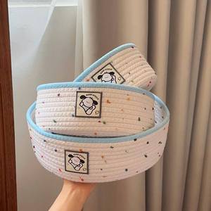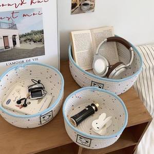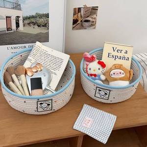 可爱布丁狗收纳筐家用棉线编织桌面收纳篮置物篮化妆品杂物收纳框