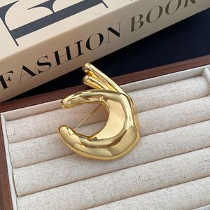 跨境新款金属光面时尚创意合金OK手势胸针男士西服质感小众配饰