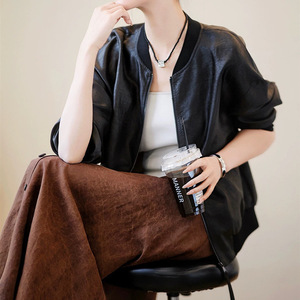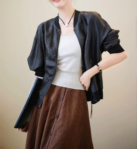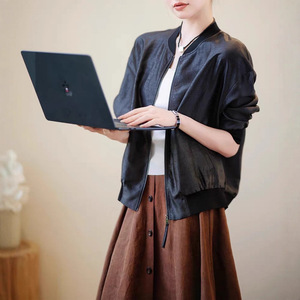 2025年新款篙端时尚桑蚕丝香云纱棒球服外套宽松百搭开衫拉链上衣