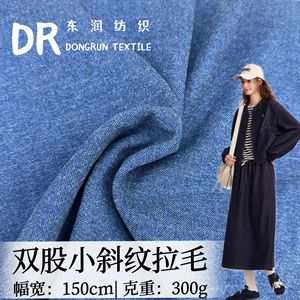 双股小斜纹拉毛 免水洗仿牛仔弹力布料 300g加厚TR仿牛仔蓝面料