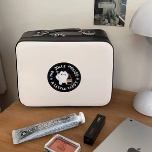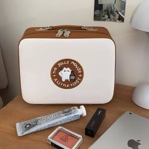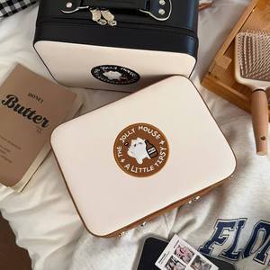 原创刺绣猫咪化妆包大容量便携旅行化妆品收纳包带镜子手提化妆箱